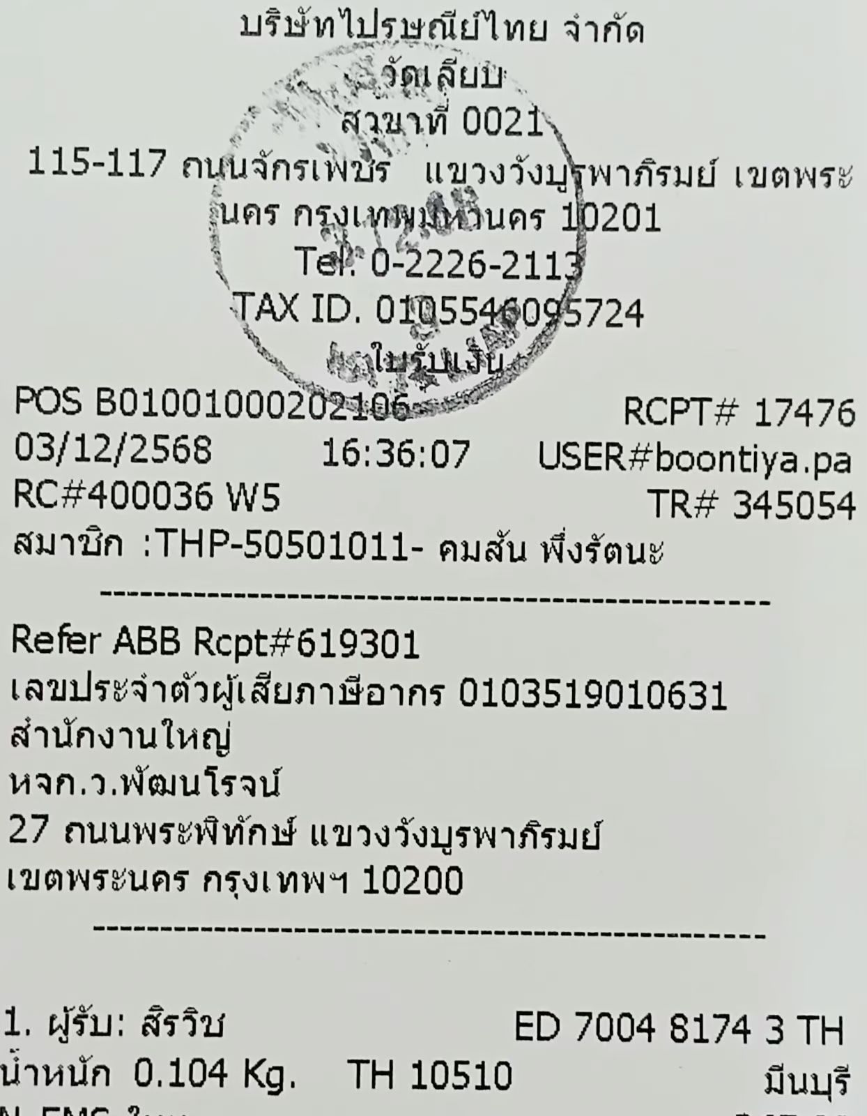 ใบส่งของวันที03/12/2025คลิกดูลิ้งนี้